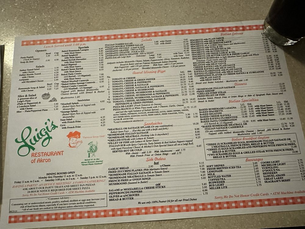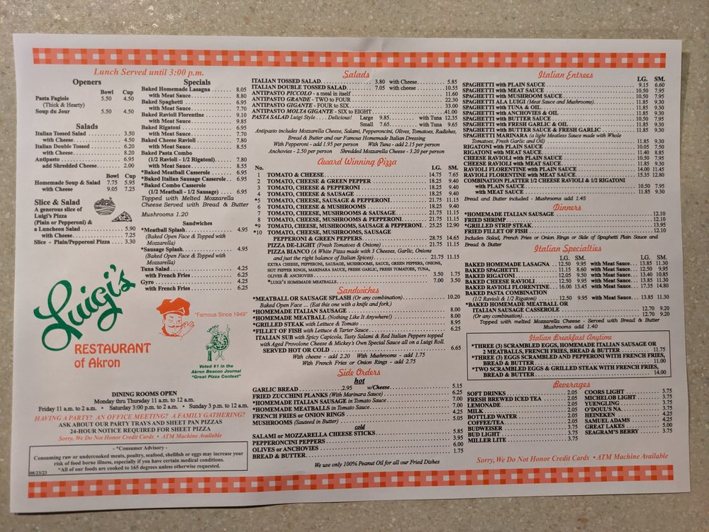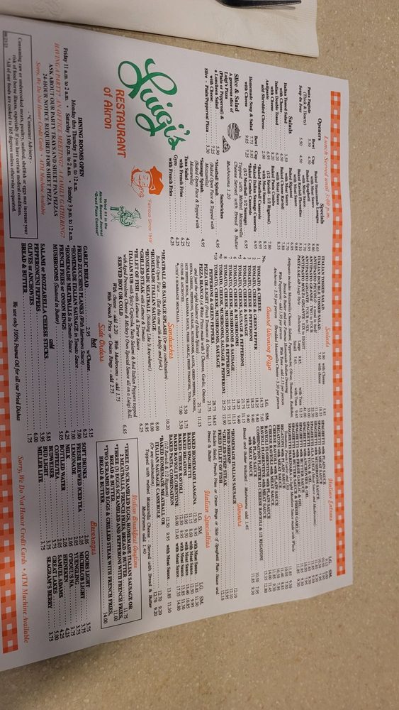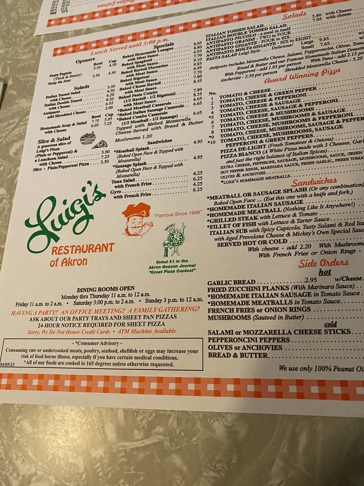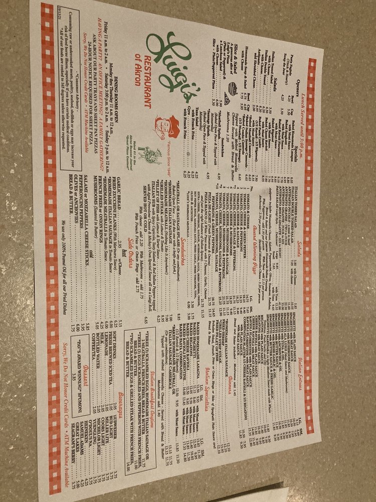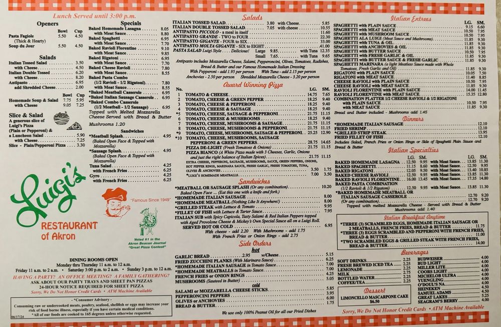 Welcome to Luigi's Restaurant, a local gem serving up award-winning pizza in Akron, Ohio. The menu features a variety of classic pizza options, such as tomato and cheese, pepperoni, sausage, and mushrooms. The cold side orders like salami cheese sticks and mozzarella sticks are perfect for sharing. Customers rave about the rich flavors and generous portions of the dishes here.